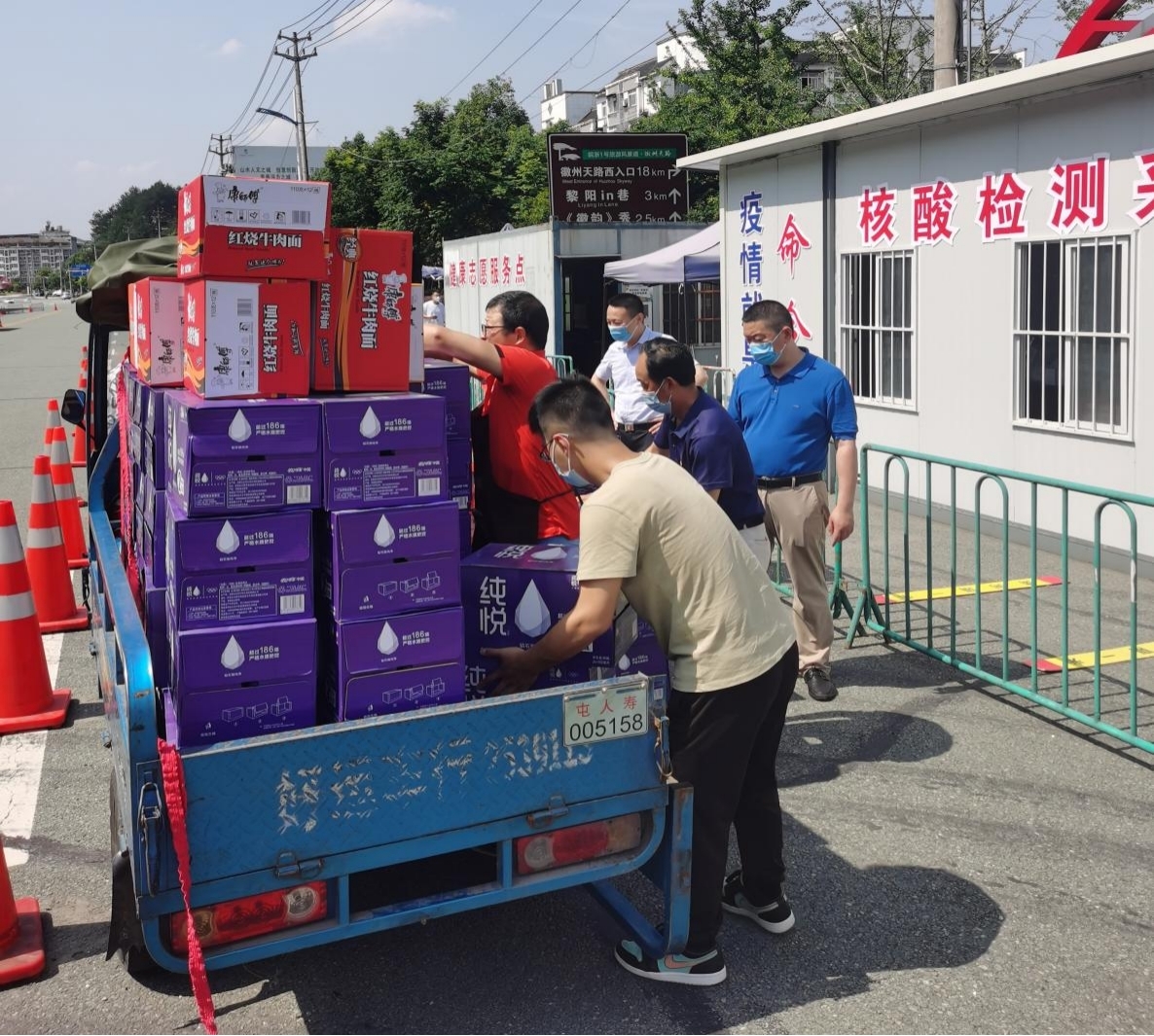 2022年6月14日下午,屯溪區(qū)統(tǒng)戰(zhàn)部、屯溪區(qū)工商聯(lián)副主席吉志勇、集團(tuán)公司黨支部書(shū)記李惠明、人力資源部經(jīng)理姚紅梅等若干代表分別赴屯溪區(qū)高速二號(hào)口和三號(hào)口開(kāi)展志愿服務(wù)活動(dòng),看望慰問(wèn)奮戰(zhàn)在疫情防控一線(xiàn)的工作人員,為他們送去礦泉水、方便面、八寶粥等物資。