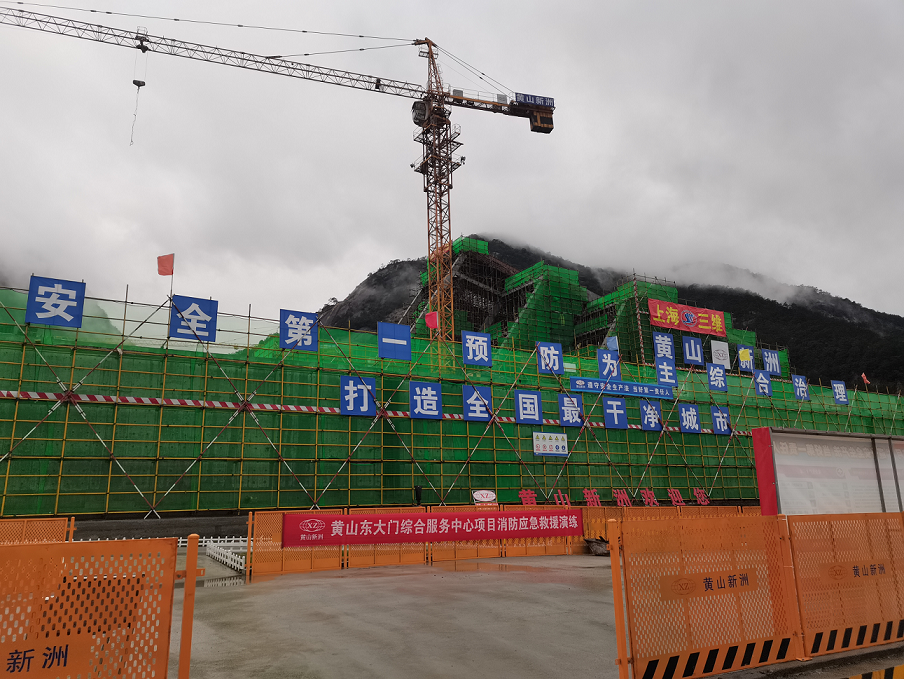 黃山東大門旅游服務中心項目位于黃山風景區(qū)譚家橋鎮(zhèn),主要建設內(nèi)容為游客綜合服務中心、車輛換乘中心及停車場、索道下站房,總建筑面積為35453.10 m2,合同額1.552億元。作為省市重點項目,建成后將成為黃山全新主要出入口和游客集散地,對推動黃山旅游發(fā)展、提升旅游品質具有重大意義。