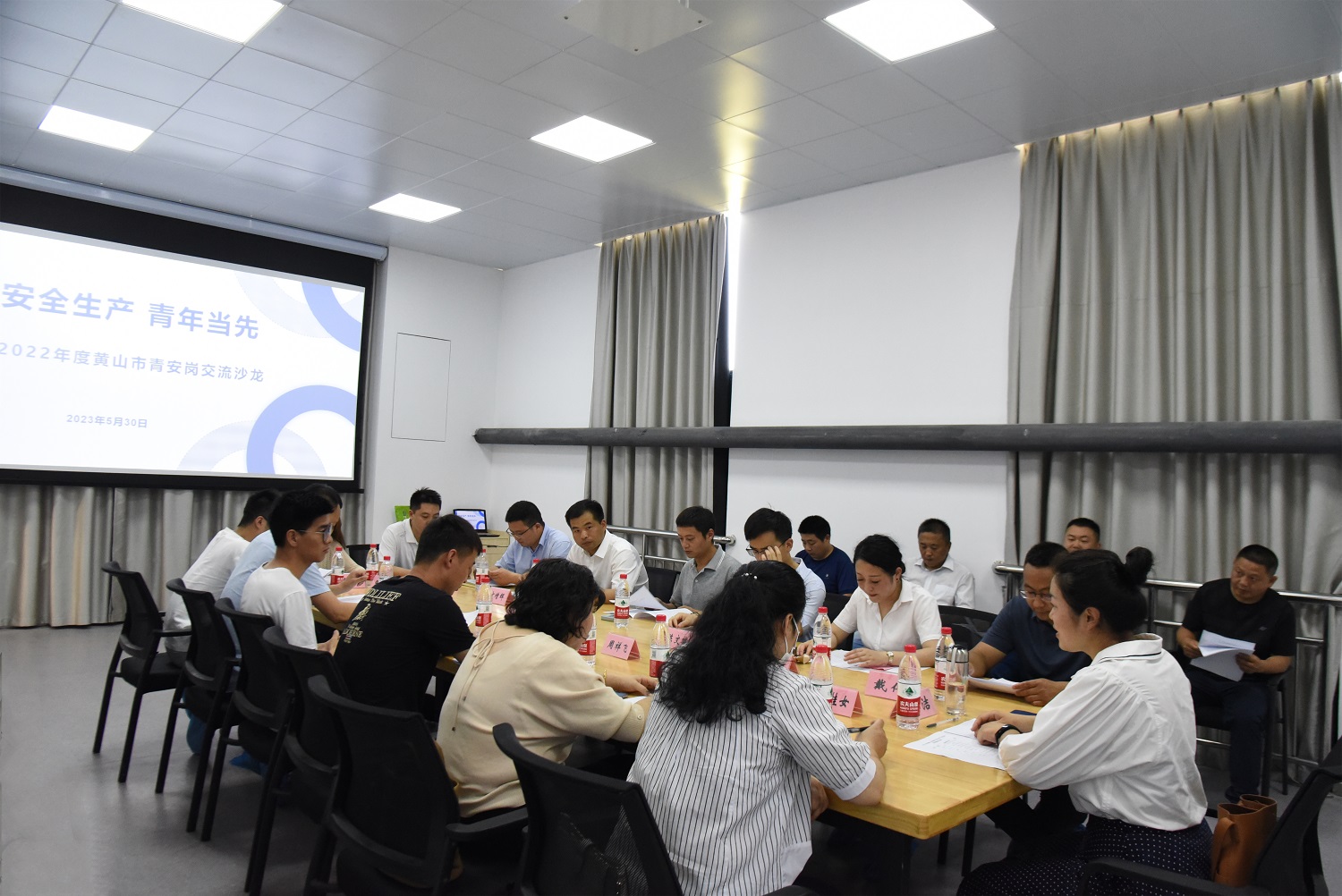 在共青團(tuán)黃山市委員會(huì)孫潔副書記和市應(yīng)急管理局相關(guān)領(lǐng)導(dǎo)的帶領(lǐng)下,黃山市14家受表彰單位代表一同參觀并學(xué)習(xí)了黃山市水務(wù)控股集團(tuán)有限公司五水廠在安全生產(chǎn)方面的先進(jìn)經(jīng)驗(yàn)。參觀活動(dòng)結(jié)束后,在五水廠會(huì)議廳集中組織了表彰授牌儀式,舉辦了沙龍活動(dòng),交流經(jīng)驗(yàn)做法。新洲集團(tuán)人力資源部分享了近些年來在生產(chǎn)安全這塊所做的具體工作及經(jīng)驗(yàn)總結(jié),并獲得2022年黃山市青年安全生產(chǎn)示范崗的榮譽(yù)稱號(hào)。