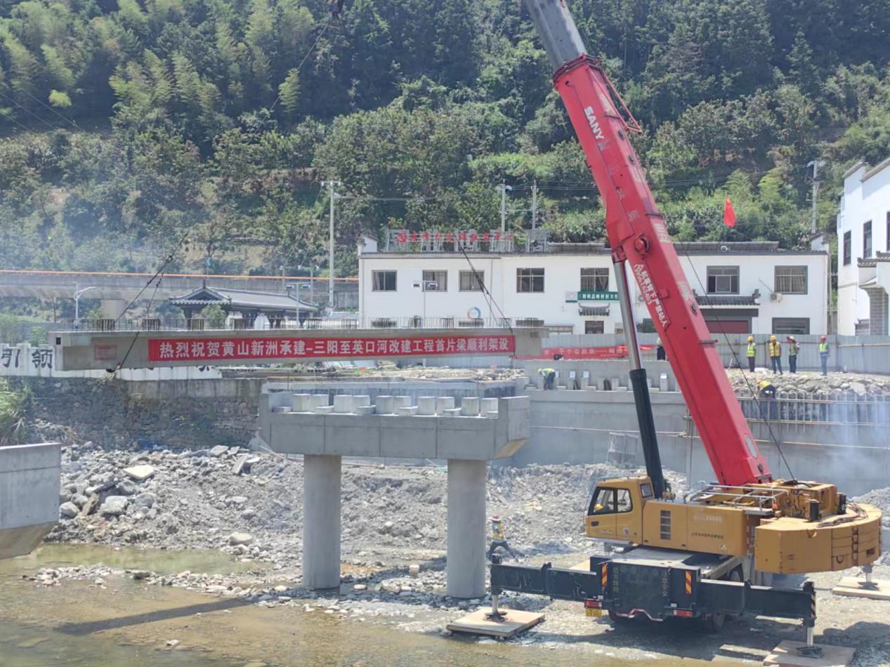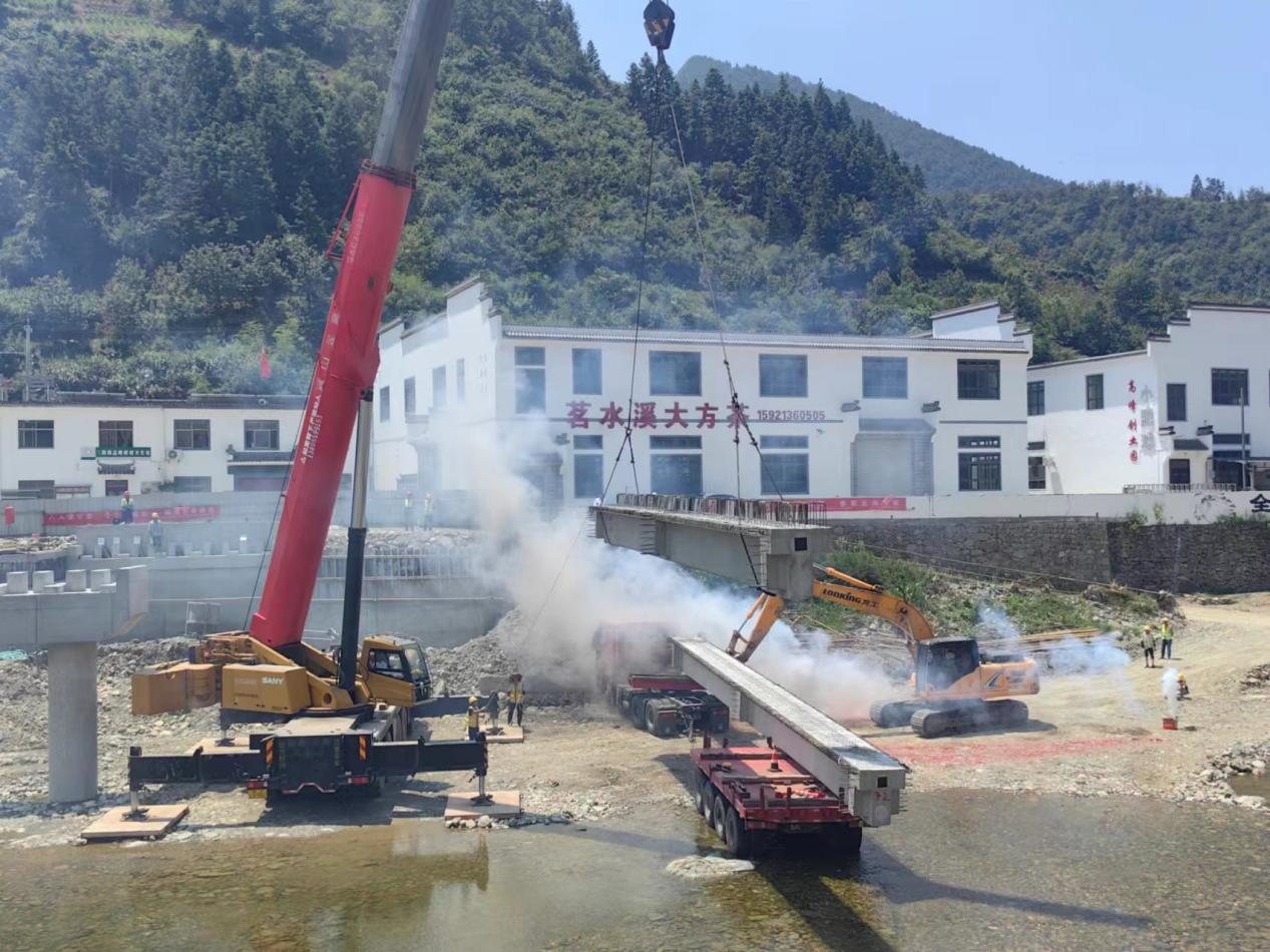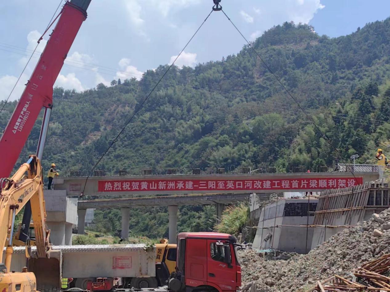 連日的持續(xù)高溫?fù)醪蛔≈啡说牟椒ィ?月5日上午,炎炎烈日之下,隨著煙花爆竹的一聲聲爆炸,我公司承建的歙縣三陽(yáng)-英坑河口農(nóng)村道路改建工程,K1+148線(xiàn)外橋第一片梁板架設(shè)成功。