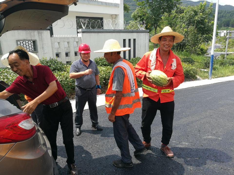 本次專項檢查活動涉及到瀝青拌合站及三個瀝青作業(yè)施工班組、八個在建項目,安全環(huán)保部經(jīng)理吳正晨向現(xiàn)場負(fù)責(zé)人提出高溫季節(jié)施工要注意大型機(jī)械的防護(hù)保養(yǎng)工作,確保工人的安全出行,并做好相應(yīng)防暑降溫工作,強(qiáng)調(diào)了避開高溫時段作業(yè),黨支部書記李惠明向現(xiàn)場施工人員表示慰問,并發(fā)放防暑降溫物品西瓜,仁丹,礦泉水等。
